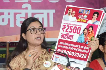 उन्होंने कहा, ”केंद्र और राज्य की राजग (राष्ट्रीय जनतांत्रिक गठबंधन) सरकारें लोगों, खासकर महिलाओं के कल्याण के बारे में परवाह नहीं करती हैं. लेकिन कांग्रेस और महागठबंधन के घटक उनके बारे में चिंतित हैं. अगर बिहार में आगामी चुनाव में महागठबंधन सत्ता में आता है, तो राज्य सरकार वंचित वर्गों की महिलाओं को 2,500 रुपये प्रति माह प्रदान करेगी.” कांग्रेस नेता ने कहा, ”हम सरकार बनने के तुरंत बाद इस योजना को लागू करेंगे, जैसा कि हमने तेलंगाना, कर्नाटक और हिमाचल प्रदेश में किया था.” लांबा ने कहा कि पार्टी नेता इस योजना के लिए राज्य भर में फॉर्म वितरित करेंगे और गठबंधन सहयोगियों के कार्यकर्ताओं द्वारा पात्र महिलाओं के लिए फॉर्म भरे जाएंगे. पार्टी ने एक मोबाइल नंबर भी जारी किया है जिस पर पात्र महिलाएं पंजीकरण के लिए ‘मिस्ड कॉल’ दे सकती हैं.