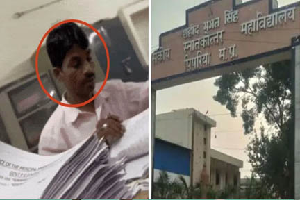 नर्मदापुरम. मध्यप्रदेश के नर्मदापुरम जिले में एक सरकारी कॉलेज के प्रिंसिपल और एक प्रोफेसर को निलंबित कर दिया गया. यह कार्रवाई एक वीडियो के सोशल मीडिया में वायरल होने के बाद की गई है. वीडियो में कथित तौर पर एक चपरासी को छात्रों की उत्तर पुस्तिकाओं का मूल्यांकन करते हुए देखा जा सकता है. सूत्रों ने कहा कि पीड़ित छात्रों ने स्थानीय विधायक ठाकुरदास नागवंशी से संपर्क किया, जिन्होंने अधिकारियों के पास इस संबंध में एक शिकायत दर्ज कराई.