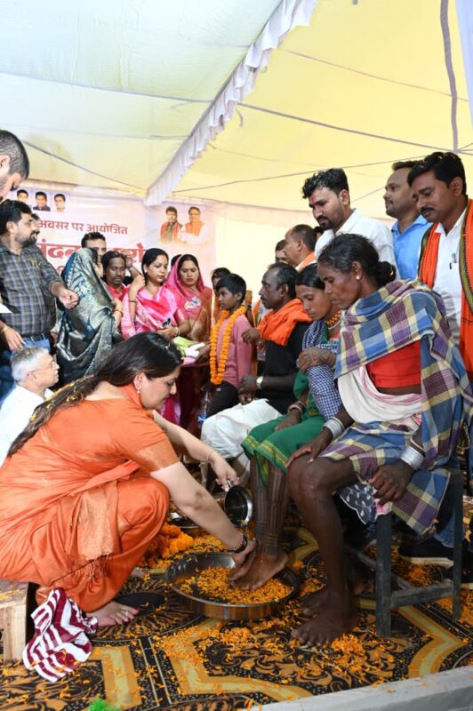 कवर्धा। पंडरिया विधायक भावना बोहरा द्वारा पंडरिया विधानसभा में निरंतर सनातन संस्कृति के प्रचार-प्रसार से लेकर आदिवासी एवं वनवासी संस्कृति को संरक्षित करने की दिशा में सार्थक प्रयास किये जा रहें हैं। जमीनी स्तर पर उनके इन प्रयासों से वनांचल क्षेत्रों में निवास करने वाले जनजाति परिवारों को लाभ मिल रहा है तो वहीं आज पंडरिया विधानसभा में भोले-भाले जनजाति समाज के लोगों को प्रलोभन देकर धर्मान्तरण कराने वालों पर कड़ा प्रहार हुआ है। पंडरिया विधानसभा के वनांचल क्षेत्रों में निवासरत 70 लोगों की आज घर वापसी हुई। विधायक भावना बोहरा ने विशेष पिछड़ी जनजाति छात्रावास मैदान, कुई-कुकदुर में सेवा दिवस के अवसर पर आयोजित संस्कृति गौरव सम्मान एवं अभिनंदन समारोह में ग्राम झूमर, बोहिल,आगरपानी, नेउर और छिंदीडीह के 70 जनजाति समाज के लोगों के पैर पखारकर अभिनंदन एवं स्वागत कर उन्हें मूल धर्म में वापसी कराया। इस दौरान पीएम सूर्य घर मुफ्त बिजली योजना के तहत अभियान की जानकारी एवं जागरूकता के लिए वाहनों को हरी झंडी दिखाकर रवाना किया।