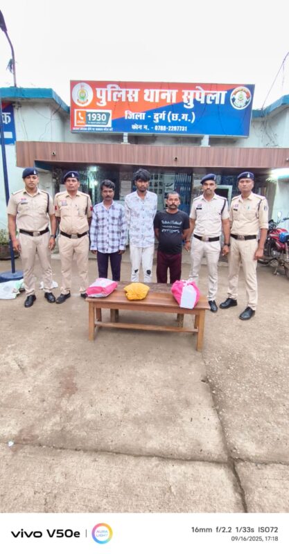 दुर्ग। पुलिस महानिरीक्षक दुर्ग रेंज रामगोपाल गर्ग के निर्देशन पर दुर्ग रेंज में दिनांक 15 सितंबर को दोपहर से चलाएं गए एक युद्ध नशे के विरुद्ध के तहत दुर्ग, बालोद और बेमेतरा में एक साथ पिछले 24 घंटों से नशे के खिलाफ कार्यवाही जारी है, जिसमें वरिष्ठ पुलिस अधीक्षक दुर्ग विजय अग्रवाल, वरिष्ठ पुलिस अधीक्षक बेमेतरा रामकृष्ण साहू, पुलिस अधीक्षक बालोद योगेश पटेल के मार्गदर्शन में जिलों में स्पेशल टीम बना कर 250 से अधिक जगहों पर छापेमारी की गई। जिसमें 80 से अधिक टीमों के द्वारा जिसमें 500 जवान शामिल थे। उनके द्वारा इस मिशन में नशे के कारोबार में कई संदिग्ध व्यक्तियों एवं पूर्व के आदतन आरोपियों की धड़पकड़ की गई, उनके कब्जे से अवैध नशे के पदार्थ जप्त किए गए। पुलिस की यह कार्रवाई नशे के फैलाव पर रोक लगाने और जिले के युवाओं को नशे के दुष्प्रभाव से बचने की दिशा में एक बड़ी पहल है।