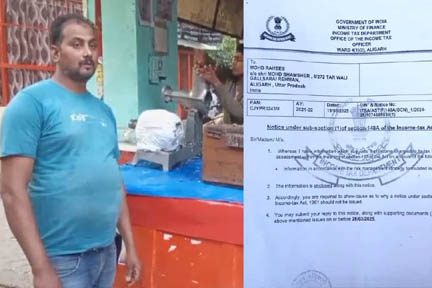 अलीगढ़. अलीगढ़ जिला अदालत परिसर में एक छोटी सी दुकान संचालित करने वाले एक जूस विक्रेता को कथित तौर पर सात करोड़ 79 लाख रुपये आयकर चुकाने का नोटिस मिला है. सराय रहमान इलाके के निवासी मोहम्मद रहीस को 18 मार्च को यह नोटिस प्राप्त हुआ जिसमें उन्हें 28 मार्च तक जवाब देने को कहा गया है.