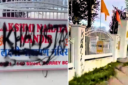 बयान में कहा गया, ”हम गहरे दुख के साथ समुदाय को 19 अप्रैल, 2025 को तड़के लगभग 3:00 बजे हुई एक परेशान करने वाली घटना की जानकारी दे रहे हैं. दो अज्ञात व्यक्तियों ने सरे में श्री लक्ष्मी नारायण मंदिर को विरूपित किया और प्रवेश द्वार तथा मंदिर के स्तंभों पर ‘खालिस्तान’ शब्द लिख दिया.” इसके अलावा, इस कृत्य के दौरान सुरक्षा कैमरा भी चुरा लिया गया.