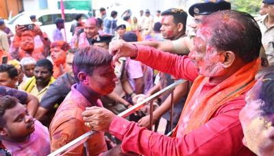रायपुर: मुख्यमंत्री विष्णु देव साय ने होली के रंगों में सराबोर अपने गृह ग्राम बगिया में ग्रामीणों के साथ आत्मीयता से होली का पर्व मनाया। मुख्यमंत्री कैम्प कार्यालय बगिया में सुबह से ही बड़ी संख्या में लोग उनसे मिलने और होली की शुभकामनाएं देने पहुंचे। मुख्यमंत्री ने सभी का गर्मजोशी से स्वागत किया, गुलाल लगाया और पर्व की शुभकामनाएं दीं।