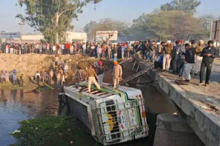 चंडीगढ. पंजाब के फरीदकोट जिले में मंगलवार की सुबह एक निजी बस के नाले में गिर जाने से एक महिला कम से कम पांच यात्रियों की मौत हो गई और 24 से अधिक यात्री घायल हो गए. अधिकारियों ने यह जानकारी दी. उन्होंने कहा कि हादसा फरीदकोट-कोटकपूरा मार्ग पर सुबह करीब आठ बजे हुआ जब 36 यात्रियों को लेकर बस मुक्तसर से अमृतसर जा रही थी. अधिकारियों ने बताया कि एक ट्रक से टकराने के बाद बस 10 फुट ऊंचे पुल से नाले में गिर गई.